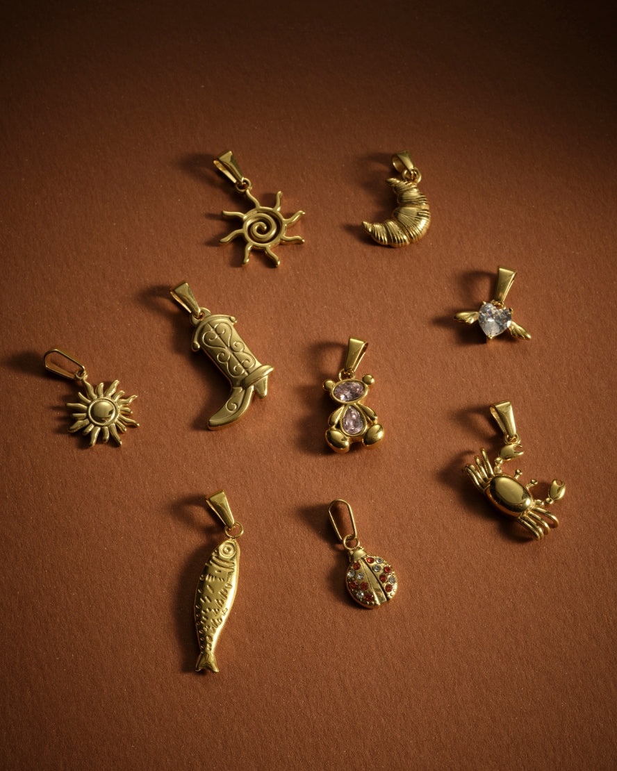 From the beginning, our collections have played with meaningful charms (the ones that also act as conversation starters), crystal highlights and lots of chunky chains and gold hoop earrings. We're suckers for anything that glistens.