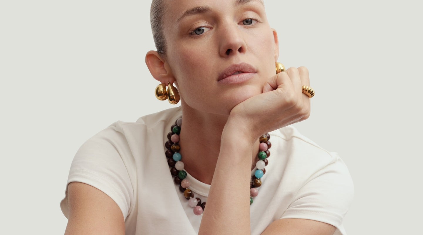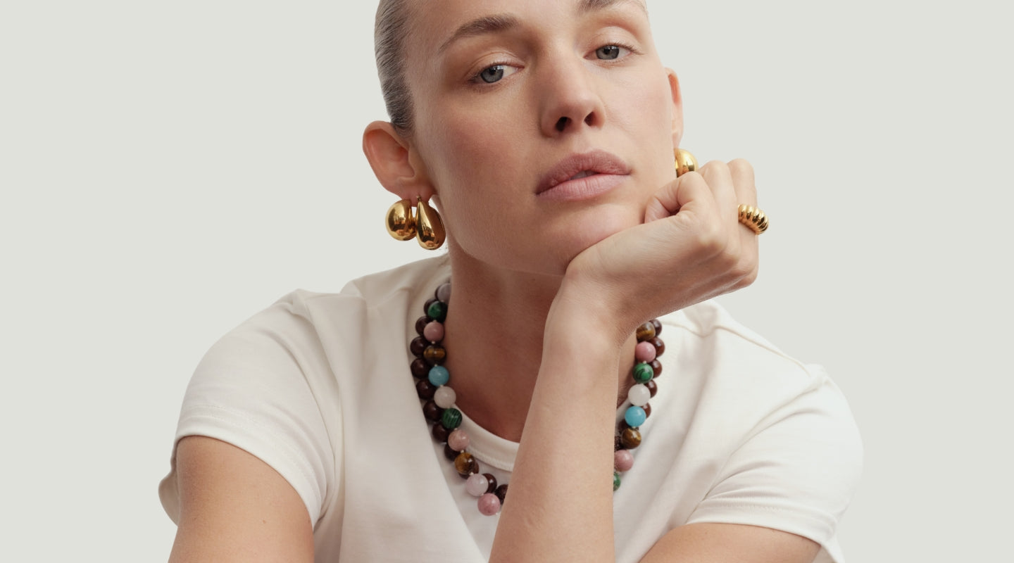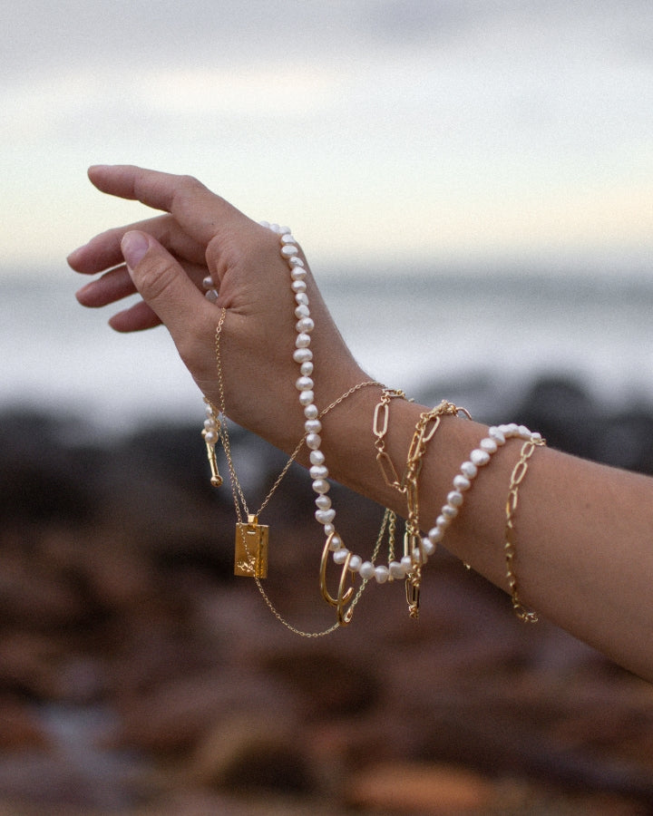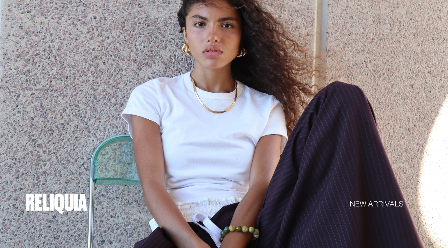 Reliquia Jewellery is also renowned for Birthstone Hoops and Necklaces – an extension of this expression. Discover gold earrings and mini-sized huggies, fit for moments of delicacy. Go for a classic look in a pair of old-meets-new pearl earrings or a mermaid-core-friendly pearl necklace. Grounding and charming at the same time, beaded necklaces are a gateway of colour and personality. Complete your look with petite or chunky rings (perfect for tap-tap-tapping away on the keyboard and keeping your digits pretty) and a sophisticated bracelet or bangle.