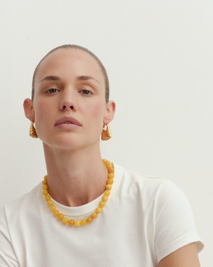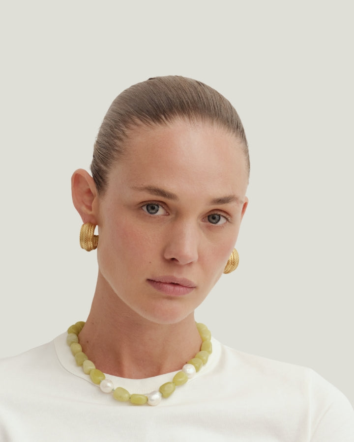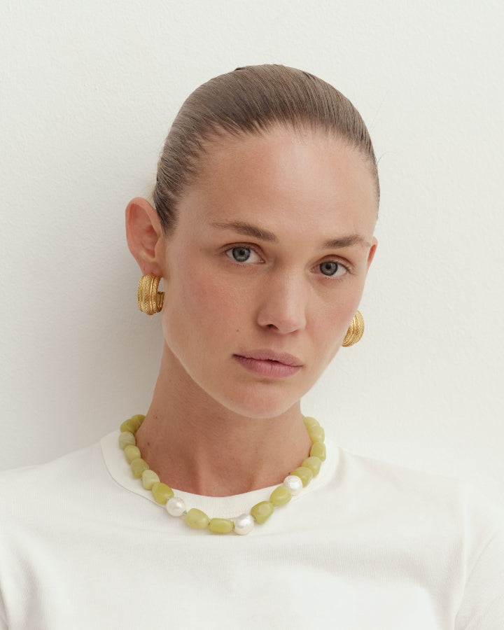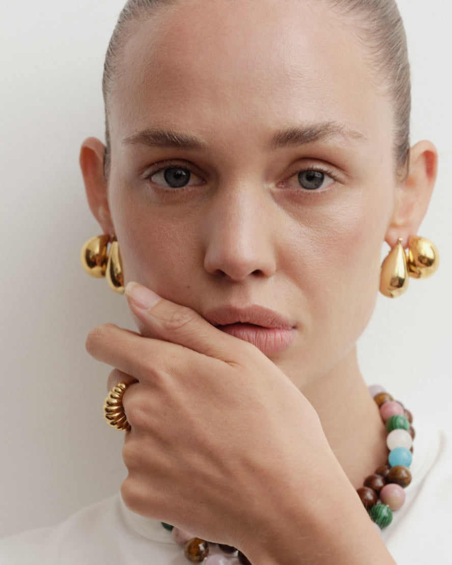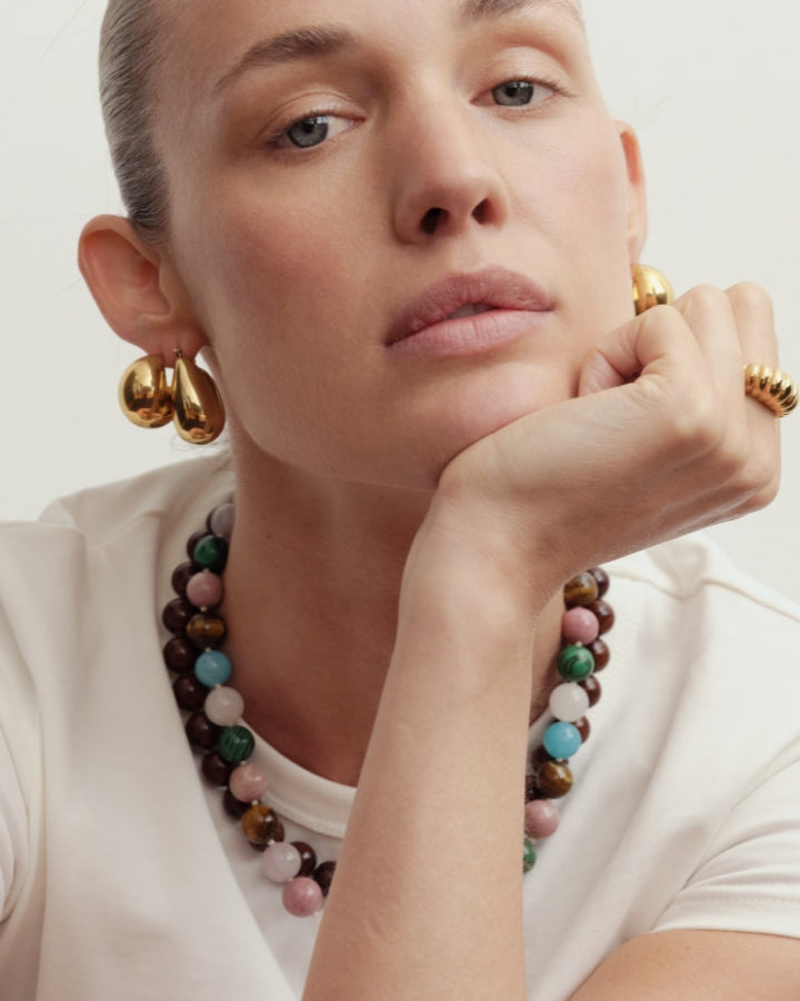 Reliquia Jewellery is also renowned for Birthstone Hoops and Necklaces – an extension of this expression. Discover gold earrings and mini-sized huggies, fit for moments of delicacy. Go for a classic look in a pair of old-meets-new pearl earrings or a mermaid-core-friendly pearl necklace. Grounding and charming at the same time, beaded necklaces are a gateway of colour and personality. Complete your look with petite or chunky rings (perfect for tap-tap-tapping away on the keyboard and keeping your digits pretty) and a sophisticated bracelet or bangle.