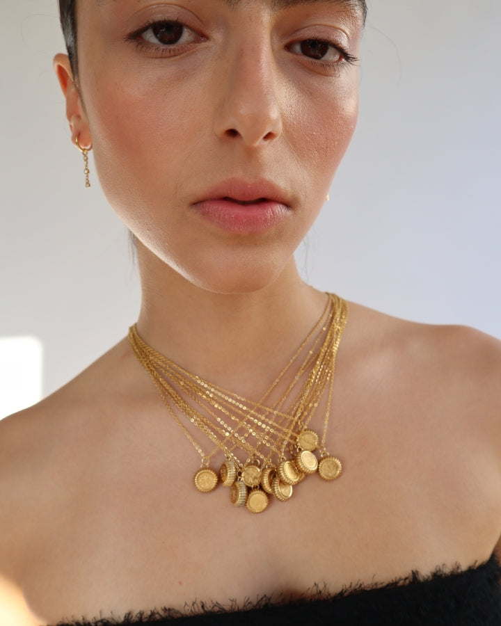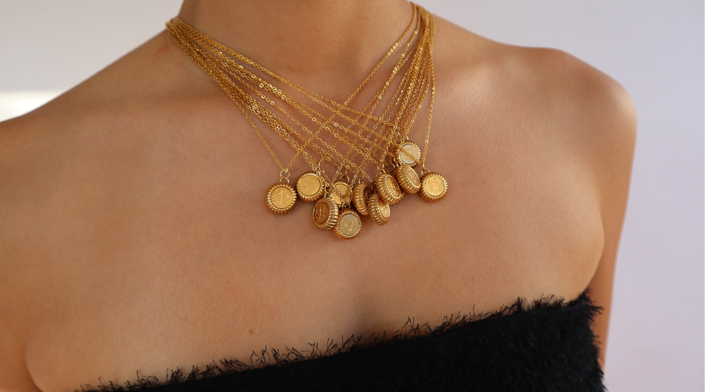 Our bestselling series of Star Sign Necklaces (now in its third era with the Celestial Necklaces) is the ultimate form of self-representation and knowing. We wear these chains around our necks, acting as symbols of self.