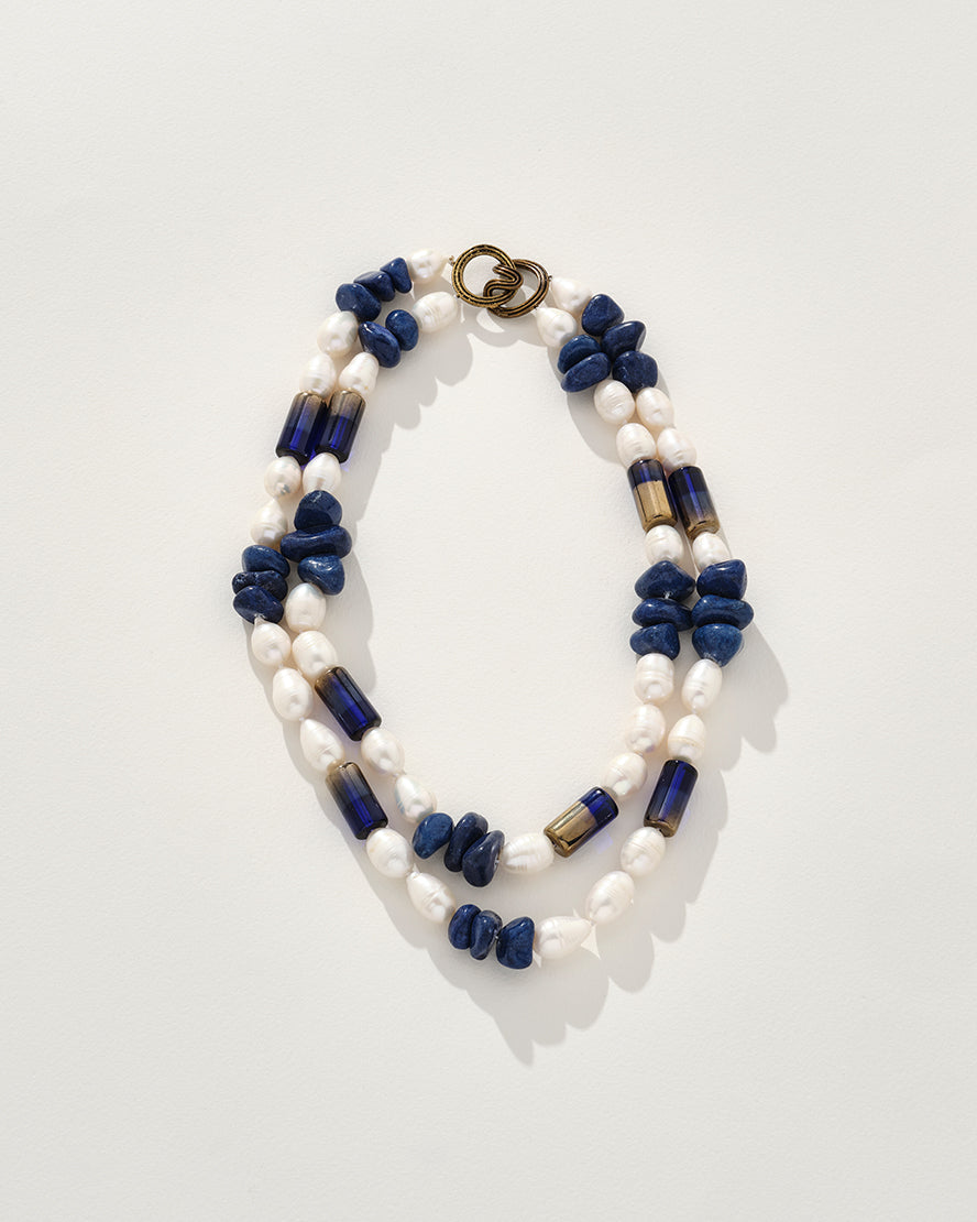 The Mitzi Necklace in Pearl is one of the most unique pieces in my jewellery collection - the blue stone contrasts so beautifully with the pearls, and I get so many compliments every time I wear it!